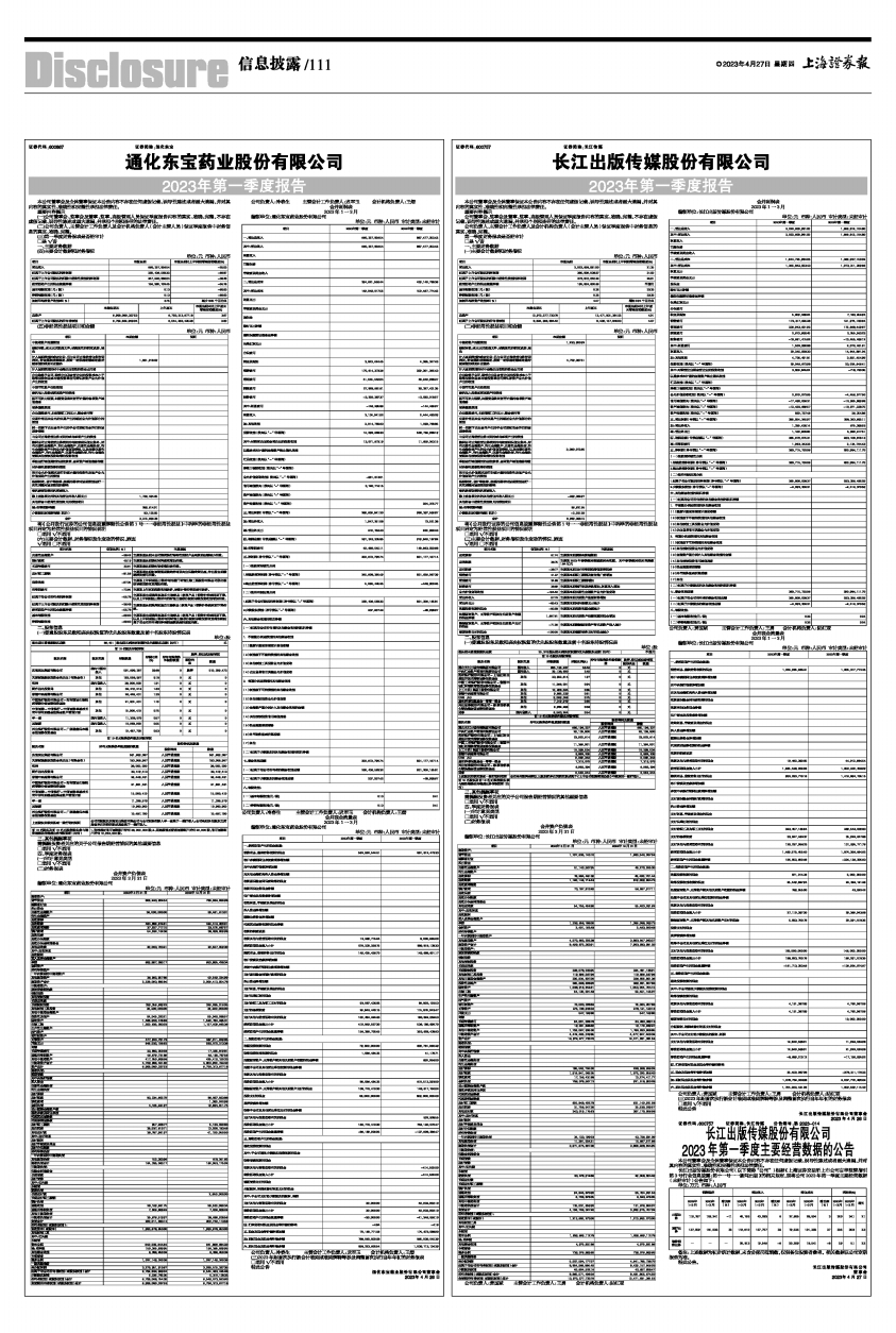 长江出版传媒股份有限公司(以下简称“公司”)根据《上海证券交易所上市公司自律监管指引第3号行业信息披露:第十一号一一新闻出版》的相关规定,现将公司2023年第一季度主要经营数据(未经审计)公告如下: