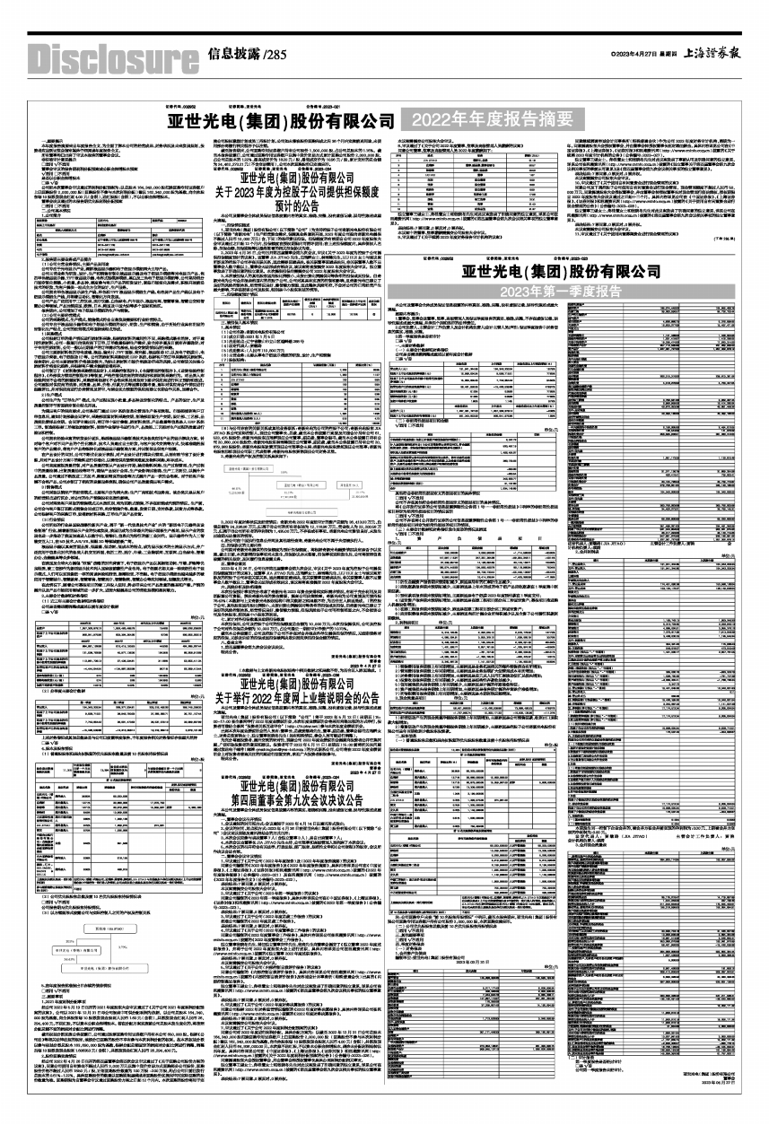 2、会议的时间、地点和方式:2023年4月26日在亚世光电(集团)股份有限公司(以下简称“公司”)会议室以现场及通讯相结合的方式召开;