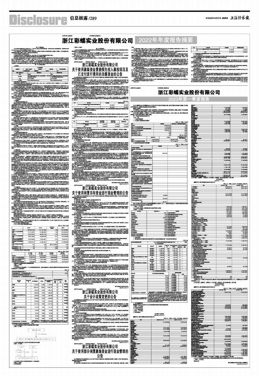 证券代码:603073 证券简称:彩蝶实业 公告编号:2023-008