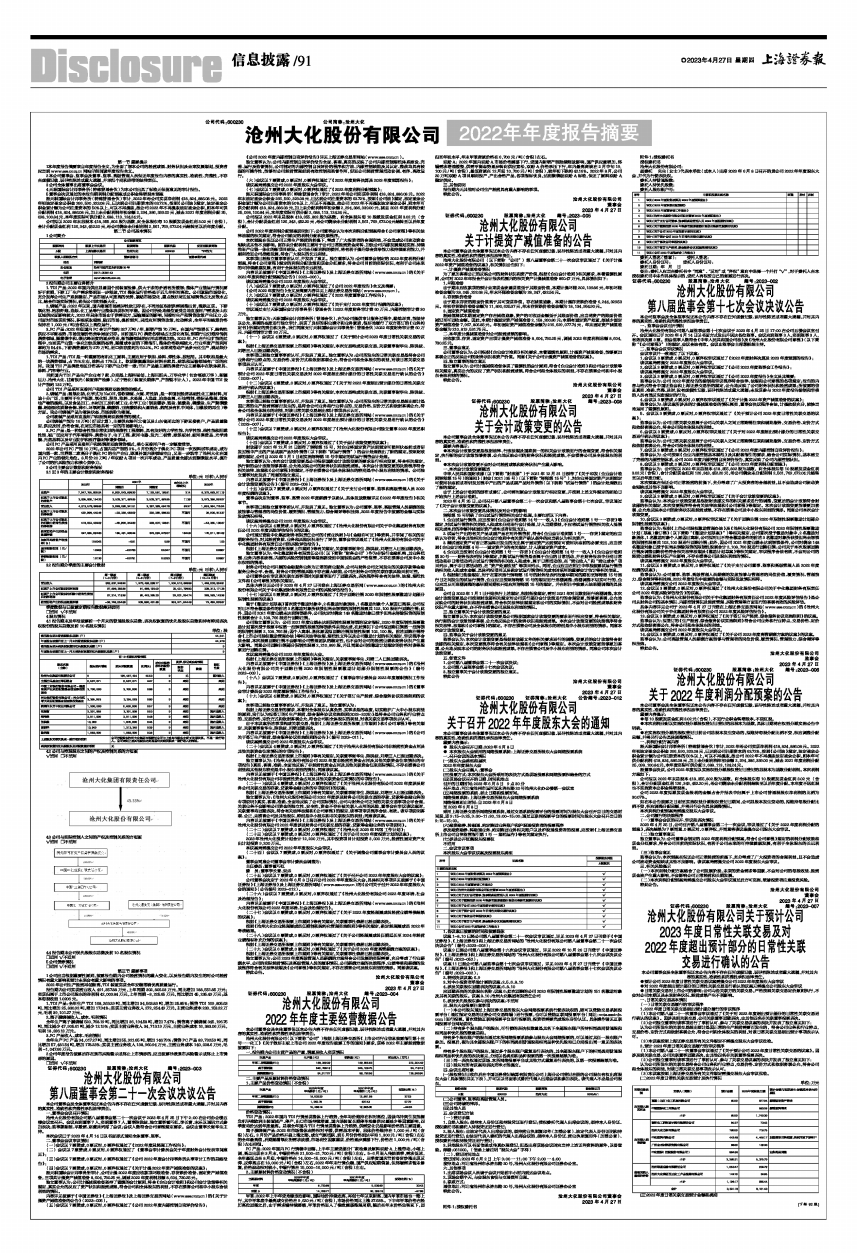 具体内容详见公司于2023年4月27日刊登在上海证券交易所网站(www.sse.com.cn)的《沧州大化股份有限公司关于中化集团财务有限责任公司2022年度风险评估报告》。