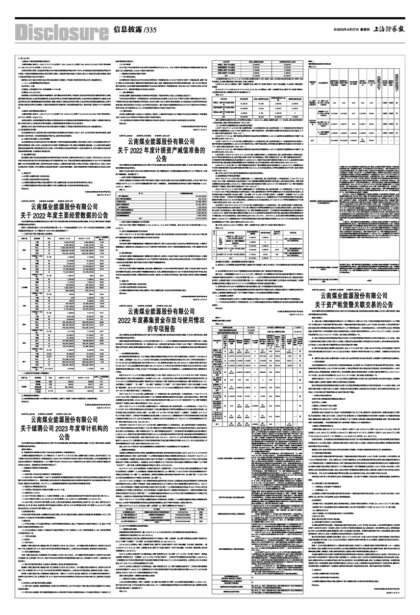 根据《上海证券交易所上市公司自律监管指引第3号一一行业信息披露第十三号一化工》有关规定和披露要求,云南煤业能源股份有限公司(以下简称公司)2022年度主要经营数据如下: