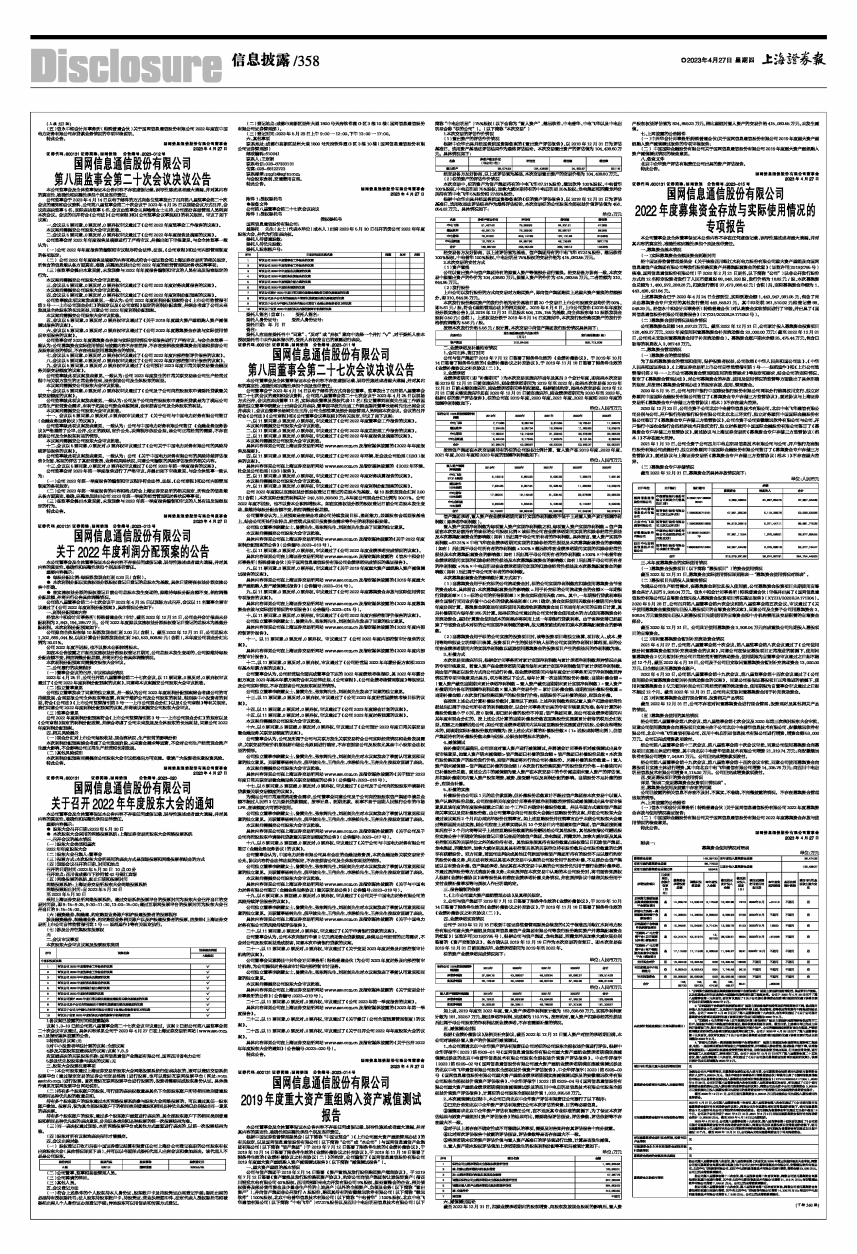 (二)中国国际金融股份有限公司关于国网信息通信股份有限公司2022年度募集资金存放与使用情况的核查意见。