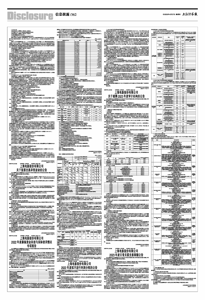 证券代码:601595 证券简称:上海电影 公告编号:2023-026