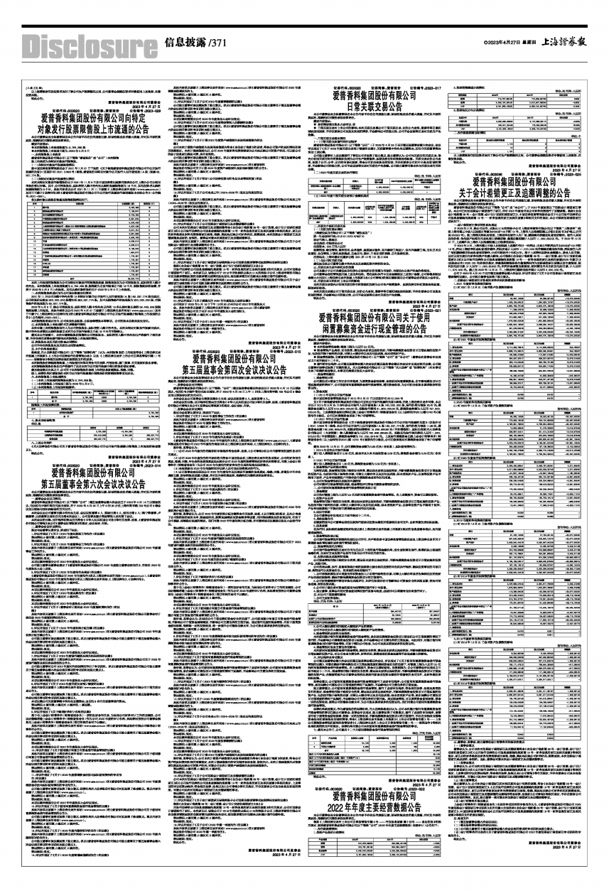 《爱普香料集团股份有限公司2022年年度报告》详见上海证券交易所网站(www.sse.com.cn),《爱普香料集团股份有限公司2022年年度报告摘要》详见上海证券交易所网站、《上海证券报》、《证券时报》。
