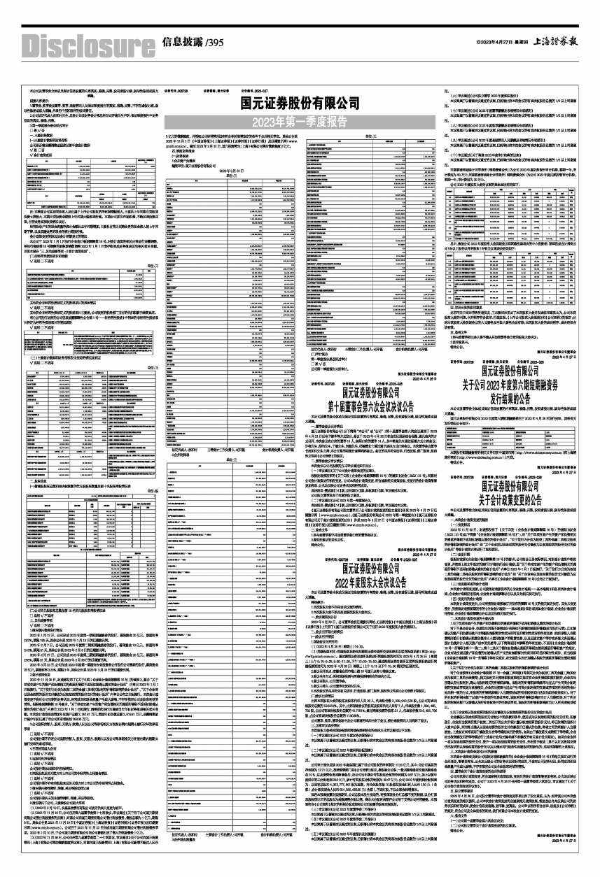 《国元证券股份有限公司独立董事关于公司会计政策变更的独立意见》详见2023年4月27日巨潮资讯网(www.cninfo.com.cn);《国元证券股份有限公司2023年第一季度报告》《国元证券股份有限公司关于会计政策变更的公告》详见2023年4月27日《中国证券报》《证券时报》《上海证券报》《证券日报》及巨潮资讯网(www.cninfo.com.cn)。