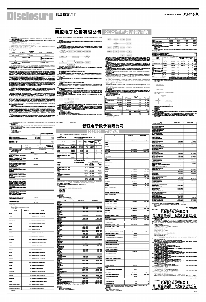 新亚电子股份有限公司(以下简称“公司”)于2023年4月14日向各位监事发出了召开第二届监事会第十五次会议的通知。2023年4月26日,第二届监事会第十五次会议以现场表决方式在公司会议室召开,会议应到监事3名,实到监事3名。本次会议由监事会主席召集和主持,会议的召开符合有关法律、行政法规、部门规章、规范性文件和《公司章程》的有关规定。