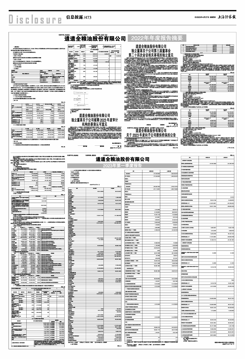 编制单位:道道全粮油股份有限公司