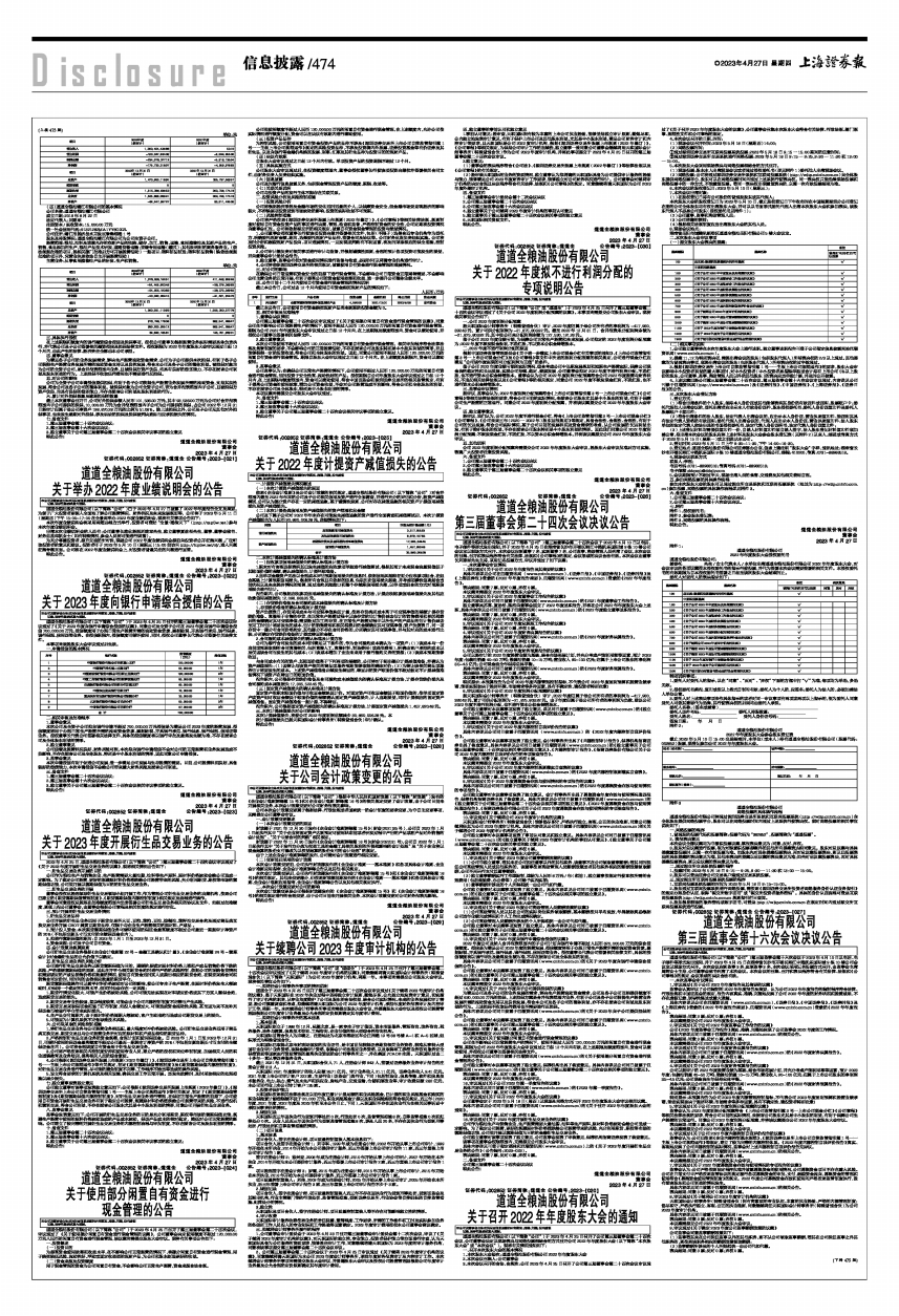 道道全粮油股份有限公司(以下简称“公司”)已于 2023 年 4 月 27日披露了2022年年度报告全文及摘要。为便于广大投资者更深入全面地了解公司经营情况、财务状况及未来发展规划等,公司将于 2023年 5月11日(星期四)下午 15:00-17:00 在全景网举办 2022 年度业绩说明会,现将有关事项公告如下:
