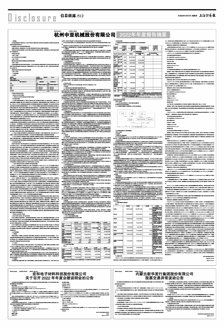 宏和电子材料科技股份有限公司(以下简称“公司”)将于2023年4月28日发布公司2022年年度报告,为便于广大投资者更全面深入地了解公司2022年度经营成果、财务状况,公司计划于2023年05月09日 下午 14:00-15:00举行2022年度业绩说明会,就投资者关心的问题进行交流。