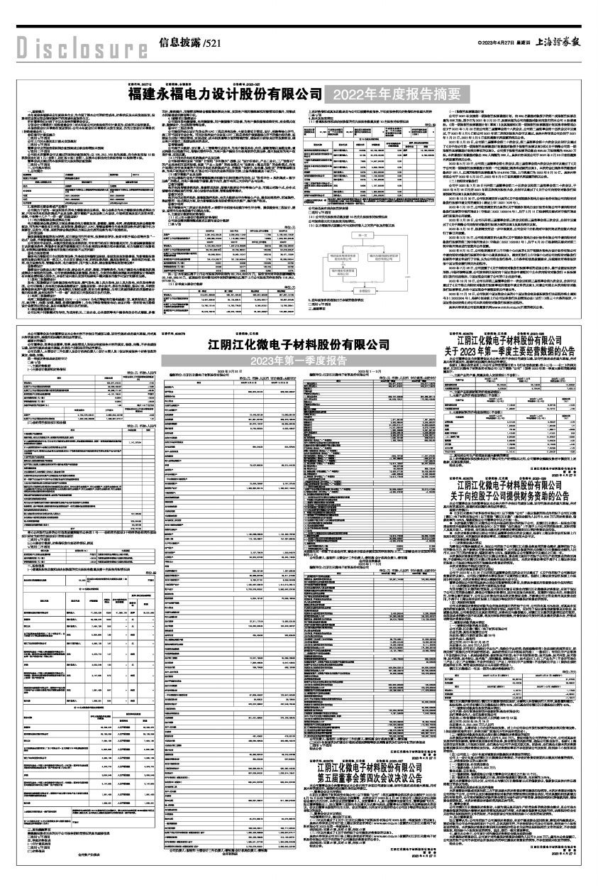 具体内容详见公司同日在上海证券交易所网站(www.sse.com.cn)披露的《江阴江化微电子材料有限公司2023年第一季度报告》。