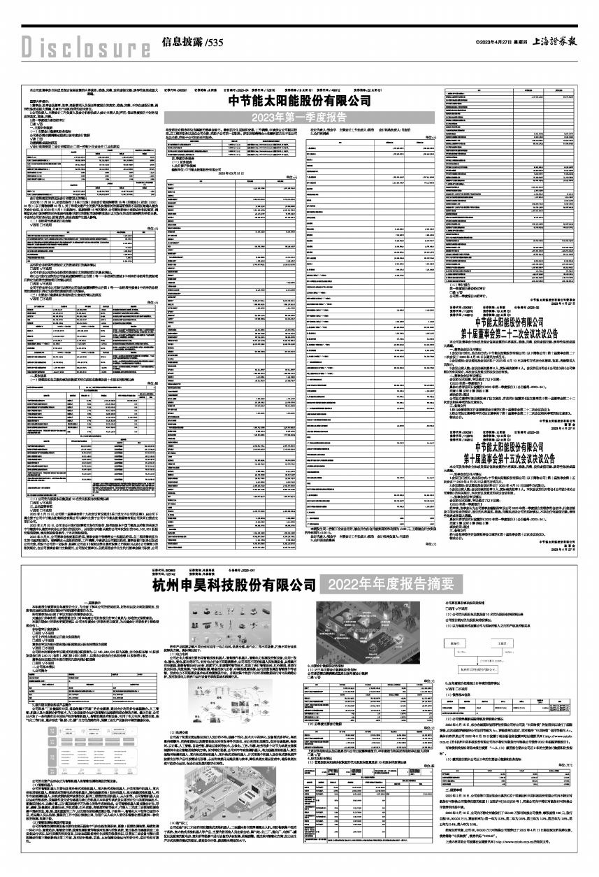 1.会议召开时间、地点和方式:中节能太阳能股份有限公司(以下简称公司)第十届董事会第二十二次会议于2023年4月25日以通讯方式召开。