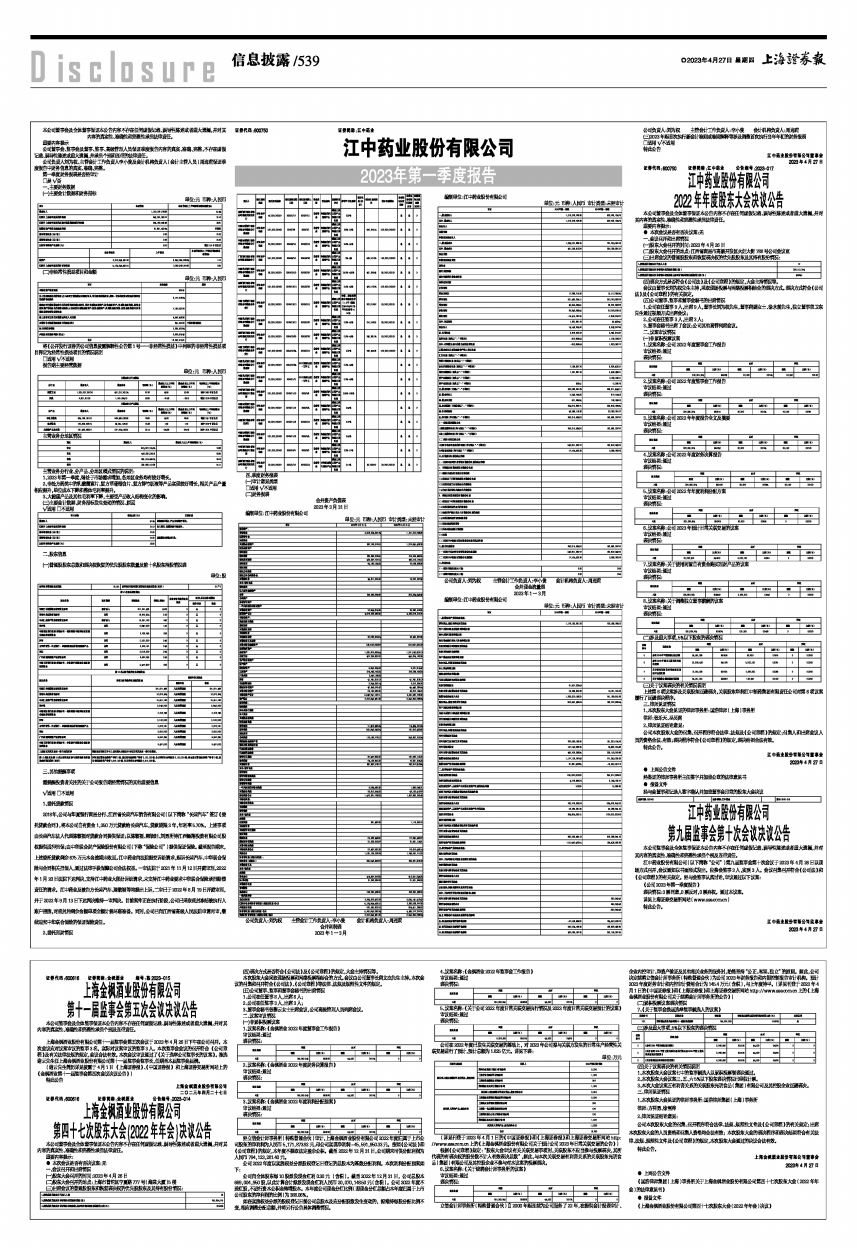 江中药业股份有限公司(以下简称“公司”)第九届监事会第十次会议于2023年4月26日以现场方式召开,会议通知以书面形式发出。应参会监事3人,实到3人。会议召集召开符合《公司法》和《公司章程》的有关规定。经与会监事认真讨论,审议通过以下议案: