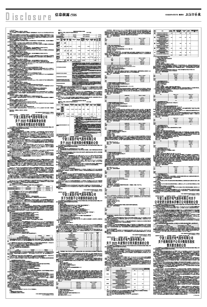 详见公司披露于上海证券交易所网站(www.sse.com.cn)的《三星医疗2023年第一季度报告》。