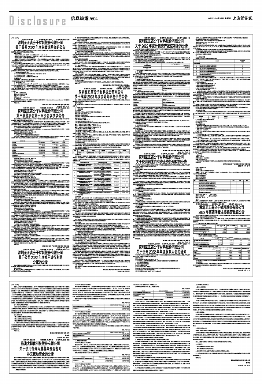 具体内容详见公司于同日在上海证券交易所网站(www.sse.com.cn)披露的《深圳至正高分子材料股份有限公司2022年年度报告》和《深圳至正高分子材料股份有限公司2022年年度报告摘要》。