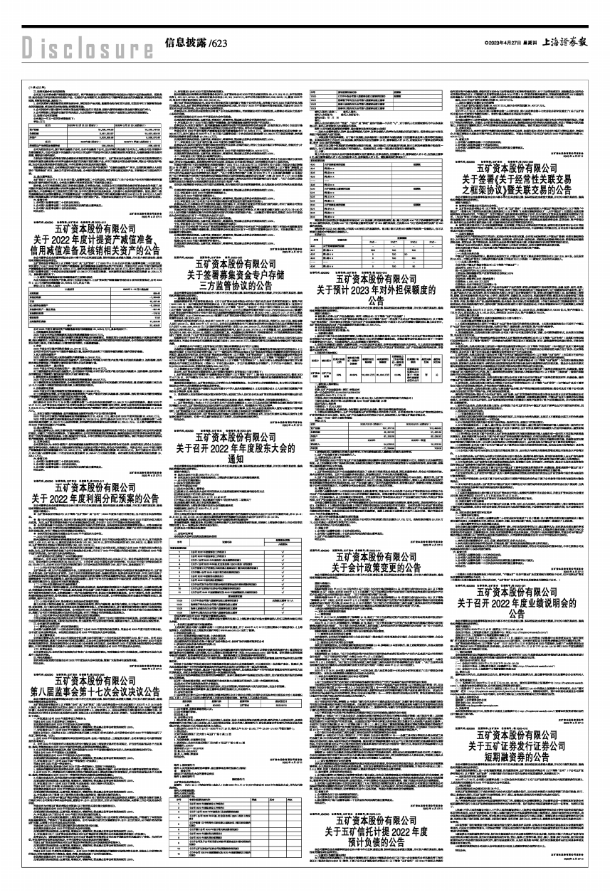 ● 五矿资本股份有限公司(以下简称“五矿资本”或“公司”)2022年度拟不进行利润分配,也不进行公积金转增股本。