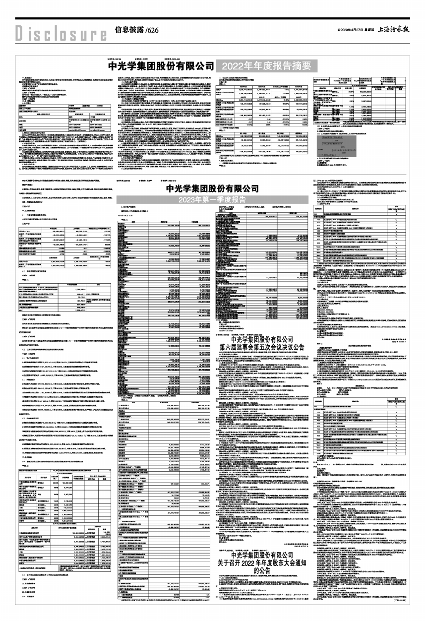 中光学集团股份有限公司(以下简称“公司”)关于召开第六届董事会第六次会议的通知于2023年4月15日以通讯方式发出,会议于2023年4月25日在南阳市公司会议室以现场和视频会议相结合方式召开。会议应参会董事9人,实际参会董事9人。公司监事、高级管理人员列席了会议,会议的召开符合《公司法》和《公司章程》的规定。会议由公司董事长李智超先生主持,审议并通过了如下决议: