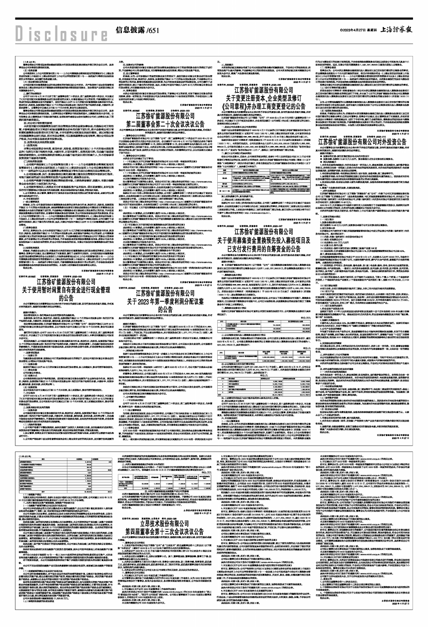 独立董事发表了同意的独立意见。详见公司同日在上海证券交易所网站(http://www.sse.com.cn)披露的《江苏徐矿能源股份有限公司关于2023年第一季度利润分配议案的公告》。