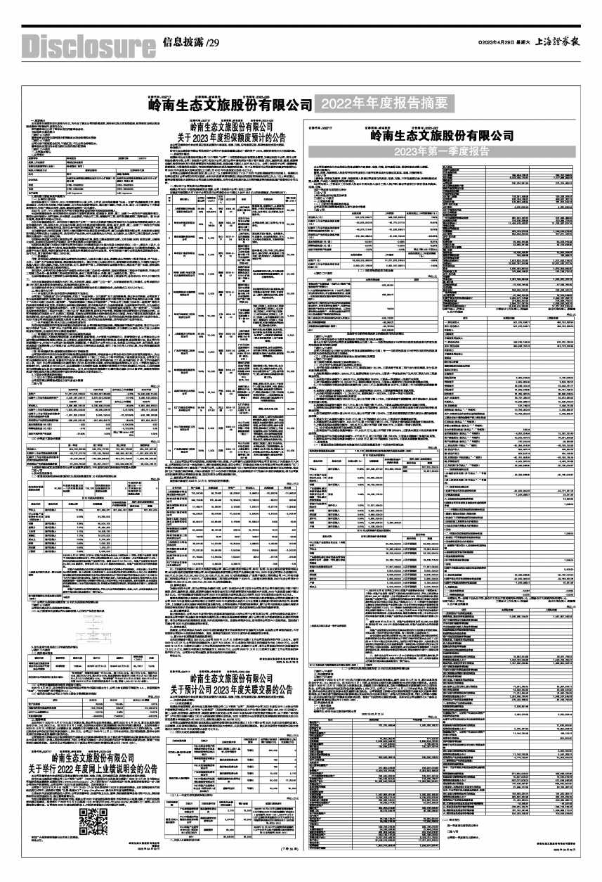 岭南生态文旅股份有限公司(以下简称“公司” )2022年年度报告全文及其报告摘要于2023年4月29日刊登在公司指定信息披露媒体巨潮资讯网(www.cninfo.com.cn)。为了更好地与广大投资者进行交流,使投资者能够进一步了解公司的生产经营情况,公司拟举行2022年度业绩说明会。具体安排如下: