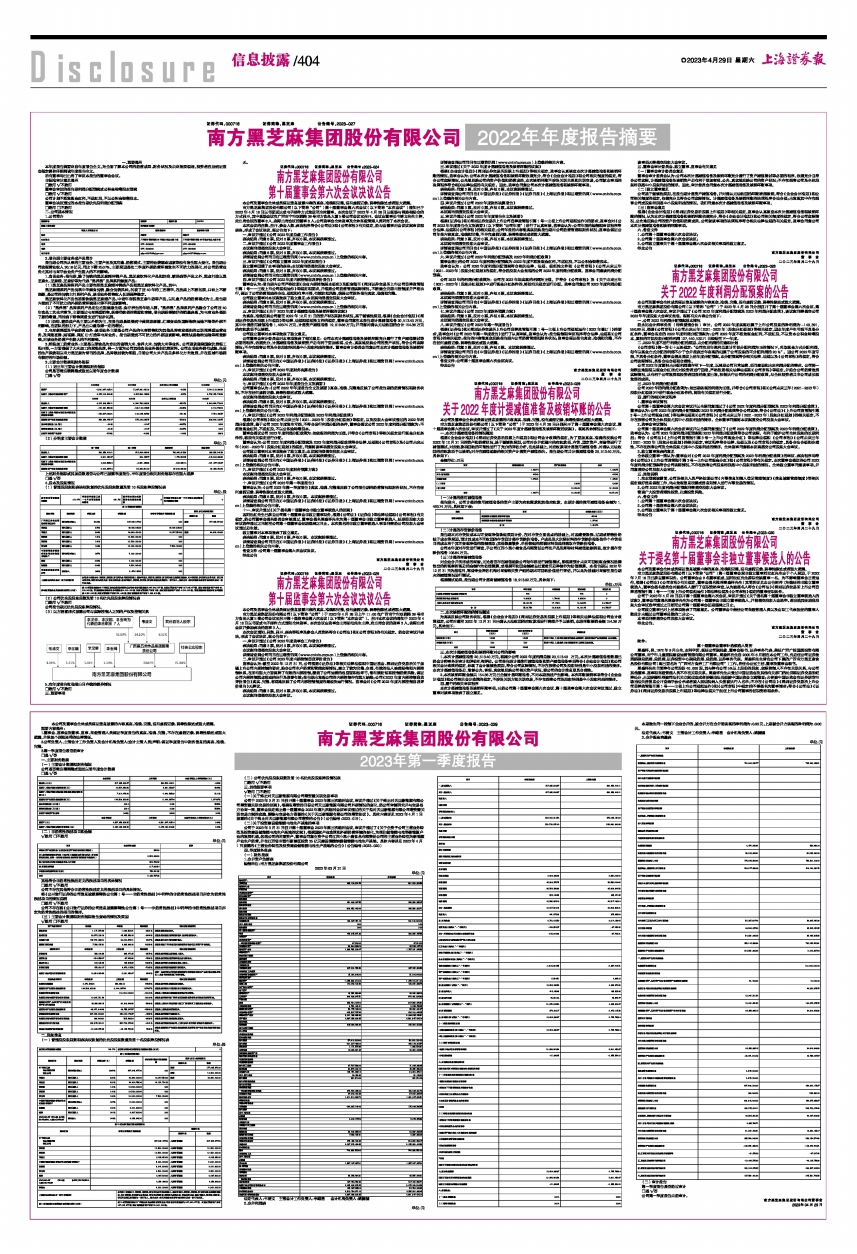 南方黑芝麻集团股份有限公司(以下简称“公司”)于2023年4月28日分别召开了第十届董事会第六次会议、第十届监事会第六次会议,审议并通过了《公司2022年度利润分配预案及2023年利润分配政策》,该议案尚需提交公司2022年年度股东大会审议批准。现将有关内容公告如下: