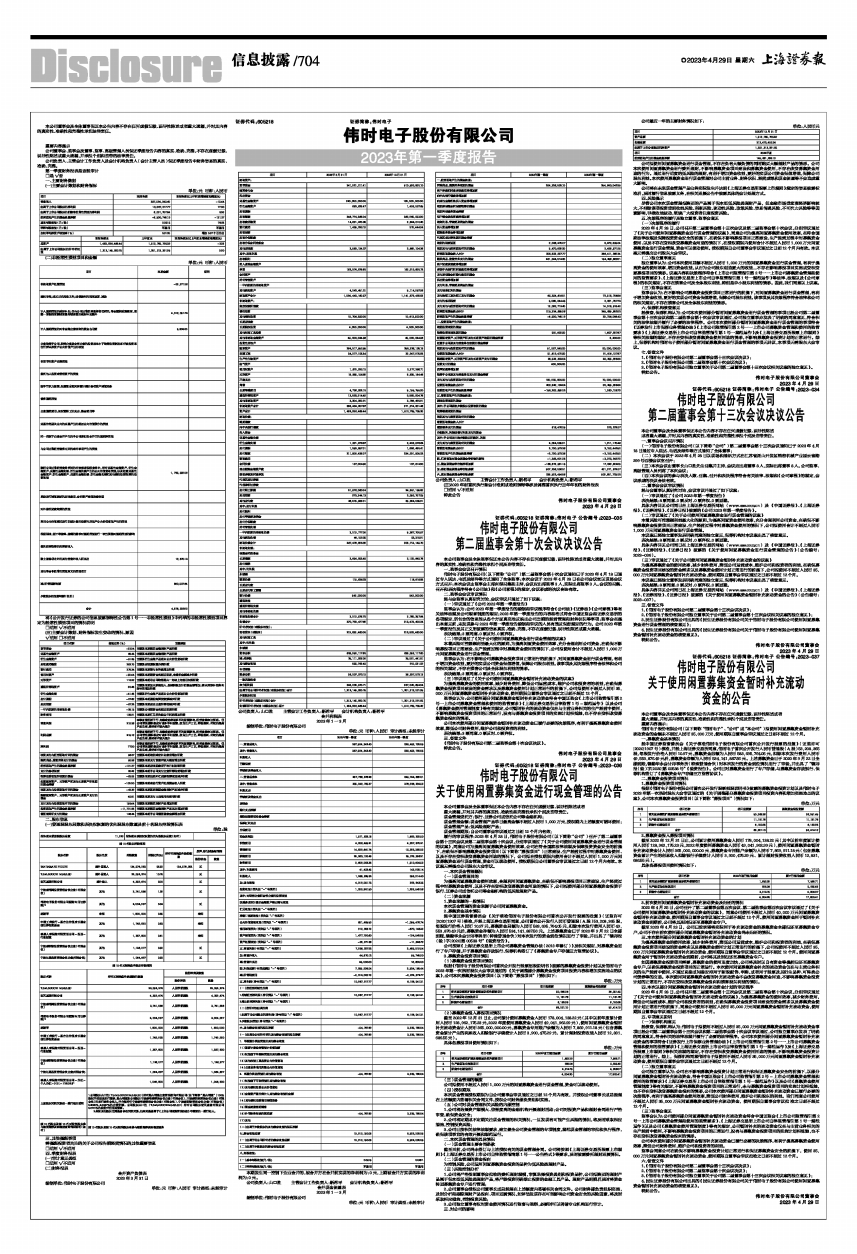 伟时电子股份有限公司(以下简称“公司”)第二届监事会第十次会议通知已于2023年4月18日通过专人送达、电话及邮件等方式通知了全体监事;本次会议于2023年4月28日在公司会议室以现场会议方式召开;本次会议由监事会主席向琛召集和主持,会议应出席监事3人,实际出席监事3人。会议的召集、召开和表决程序符合《公司法》和《公司章程》的规定,会议形成的决议合法有效。