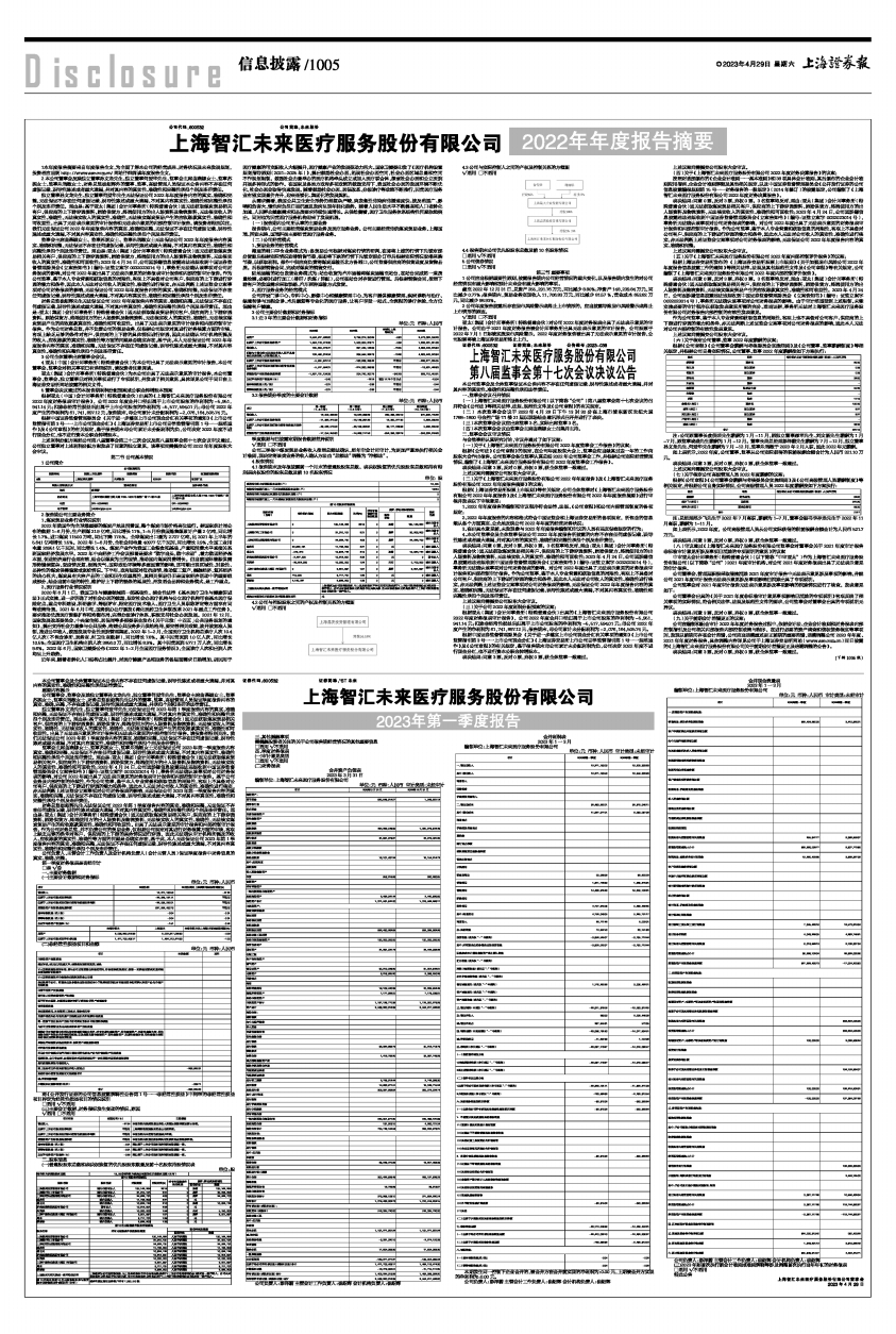根据《上海证券交易所股票上市规则》等有关规定,公司全体监事对《上海智汇未来医疗服务股份有限公司2022年年度报告》及《上海智汇未来医疗服务股份有限公司2022年年度报告摘要》进行审核并发表以下审核意见: