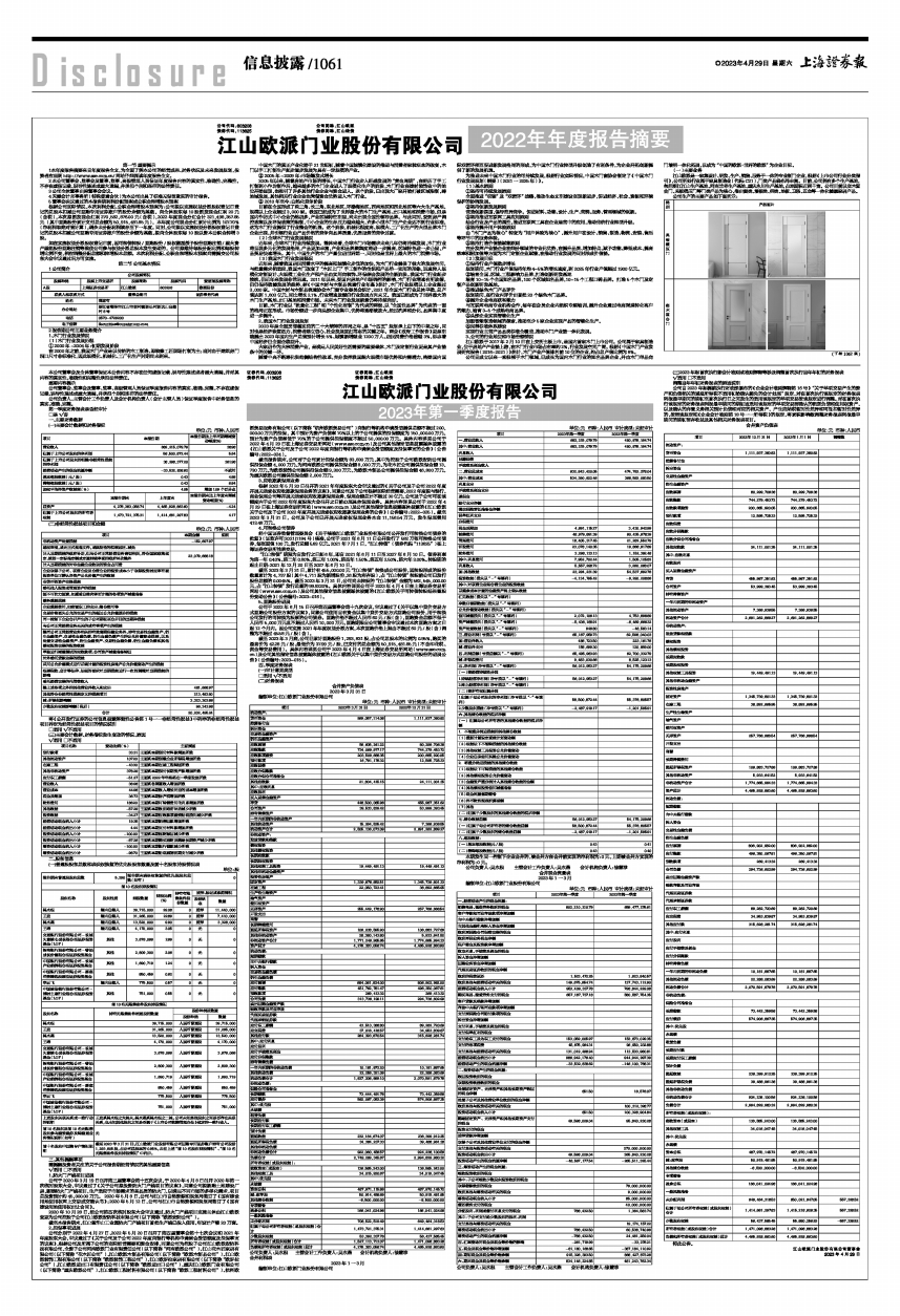 截至2023年3月31日,累计有455,000.00元“江山转债”转换成公司股份,因转股形成的股份数量累计为4,737股(其中4,711股为新增股份,26股为库存股),占“江山转债”转股前公司已发行股份总额的0.0045%。截至2023年3月31日,公司尚未转股的“江山转债”金额为582,545,000.00元,占“江山转债”发行总量的99.9220%。具体内容详见公司于2023年4月4日在上海证券交易所网站(www.sse.com.cn)及公司其他指定信息披露媒体披露的《江山欧派关于可转债转股结果暨股份变动公告》(公告编号:2023-016)。