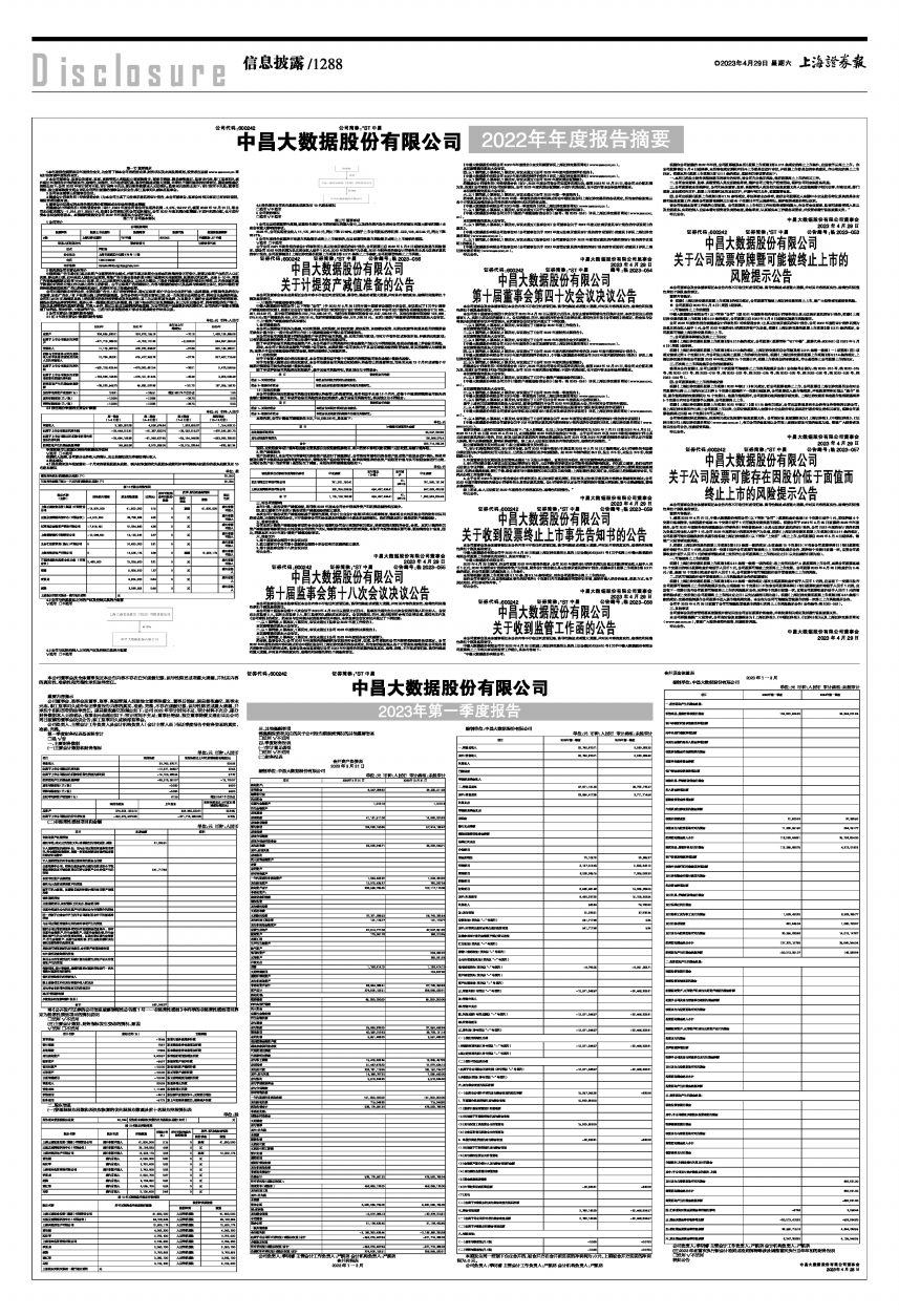 《中昌大数据股份有限公司2023年第一季度报告》详见上海证券交易所网站(www.sse.com.cn)。