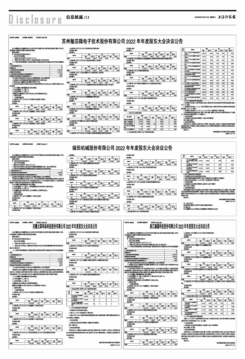 绿田机械股份有限公司2022年年度股东大会决议公告