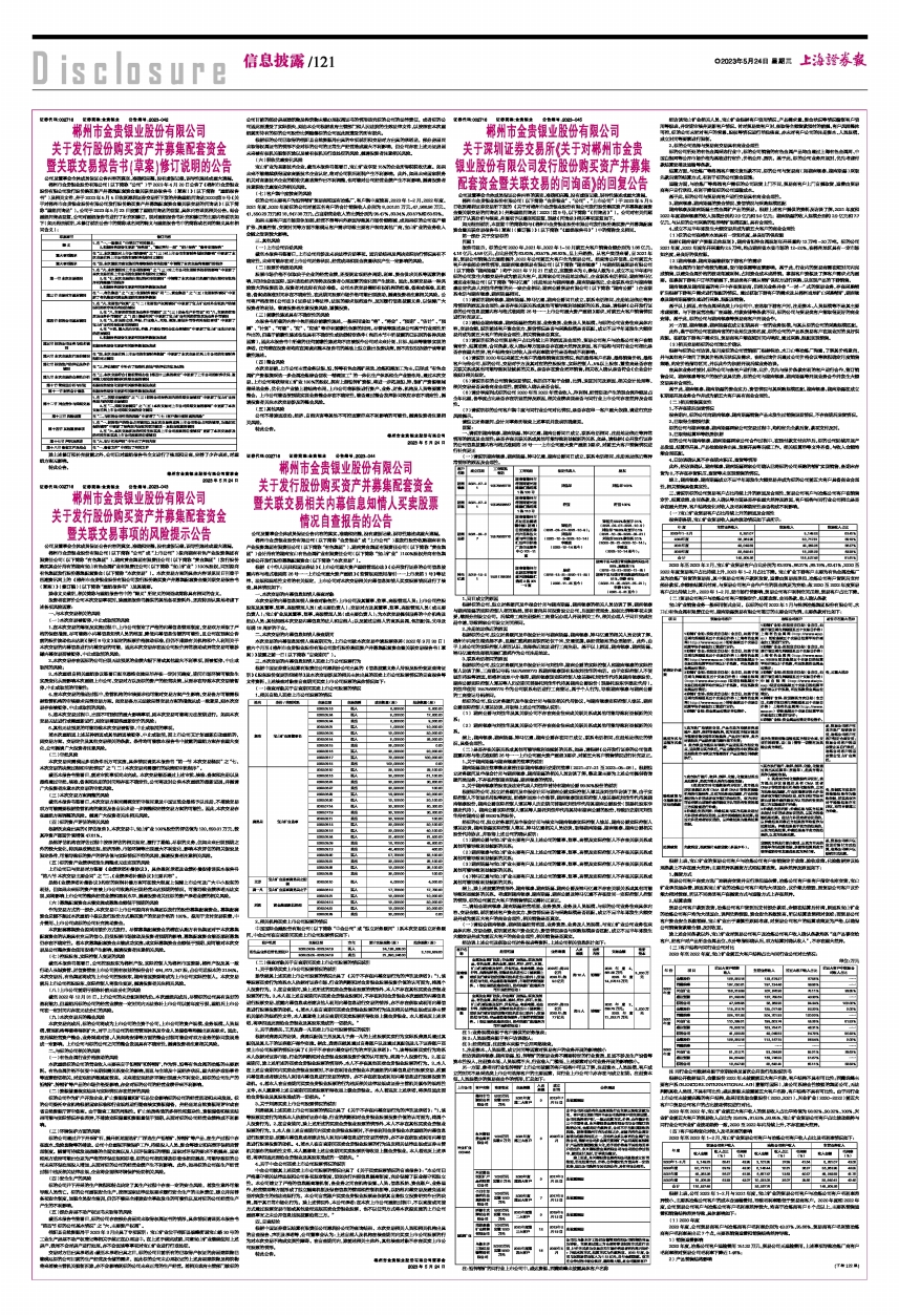 郴州市金贵银业股份有限公司(以下简称“公司”)于2023年4月20日公告了《郴州市金贵银业股份有限公司发行股份购买资产并募集配套资金暨关联交易报告书(草案)》(以下简称“重组报告书”)及相关文件,并于2023年5月5日收到深圳证券交易所下发的并购重组问询函[2023]第9号《关于对郴州市金贵银业股份有限公司发行股份购买资产并募集配套资金暨关联交易的问询函》(以下简称“重组问询函”)。公司于2023年5月23日披露了重组问询函的回复,具体内容详见相关公告。结合重组问询函回复,公司对重组报告书进行了补充和修订。现对重组报告书补充和修订的主要内容说明如下(如无特别说明,本修订说明公告中的简称或名词的释义与重组报告书中的简称或名词的释义具有相同含义):