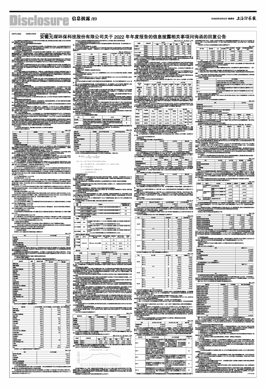 安徽元琛环保科技股份有限公司(以下简称“公司”、“元琛科技”)于2023年4月27日收到上海证券交易所科创板公司管理部向公司发送的《关于安徽元琛环保科技股份有限公司2022年年度报告的信息披露监管问询函》(上证科创公函【2023】0095号)(以下简称“问询函”),公司及相关中介机构就《问询函》关注的问题逐项进行认真核查,现就《问询函》相关问题回复如下: