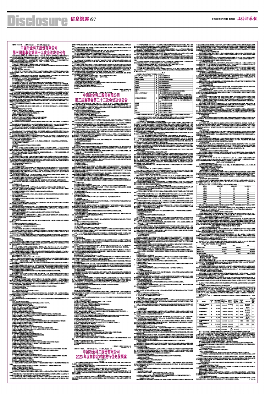 公司第三届董事会第四十九次会议于2023年6月21日在中冶大厦以现场与视频结合的方式召开。会议应出席董事七名,实际出席董事七名。会议由陈建光董事长主持。本次会议的召开符合《中华人民共和国公司法》等法律法规及《中国冶金科工股份有限公司章程》(以下简称“《公司章程》”)的有关规定。