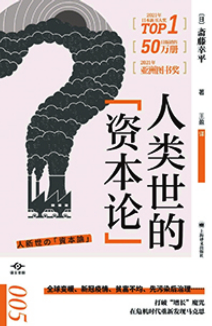 “人类世”的概念来自诺贝尔化学奖获得者保罗·克鲁岑,意为从地质学的角度看,地球已然进入了被人类活动痕迹完全覆盖的年代,他将这一时代命名为“人类世”。物种灭绝、生态污染、二氧化碳超标……现代化带来了经济增长,但却在不断透支当下乃至未来的生存资源。要想避免“人类世”的硬着陆,就需要回到马克思主义,重新发现“可持续性”和“社会平等”实现的可能性。本书作者斋藤幸平是东京大学研究生院综合文化研究科副教授,专业研究方向为经济思想、社会思想。本书是作者的代表作,该书的日语版在2021年出版后,已销售50万册。在书中,作者重申了一贯的立场:资本主义对近乎无限利润的追求正在驱动人类摧毁地球,只有通过“去增长”才能减缓社会生产、财富流动的速度,以此来修复人类对环境造成的伤害。