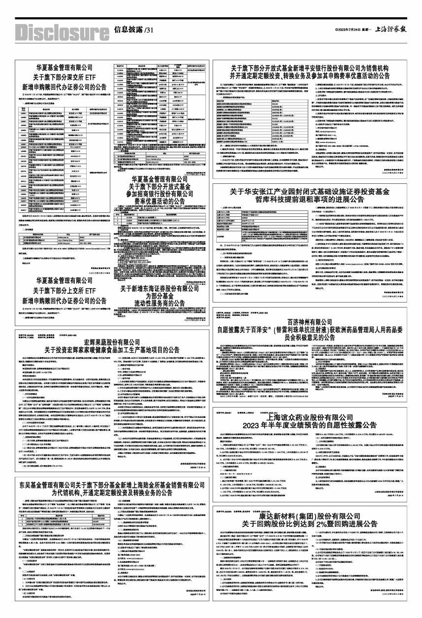注:自 2023年6月28日起华安张江光大园封闭式基础设施证券投资基金更名为华安张江产业园封闭式基础设施证券投资基金。