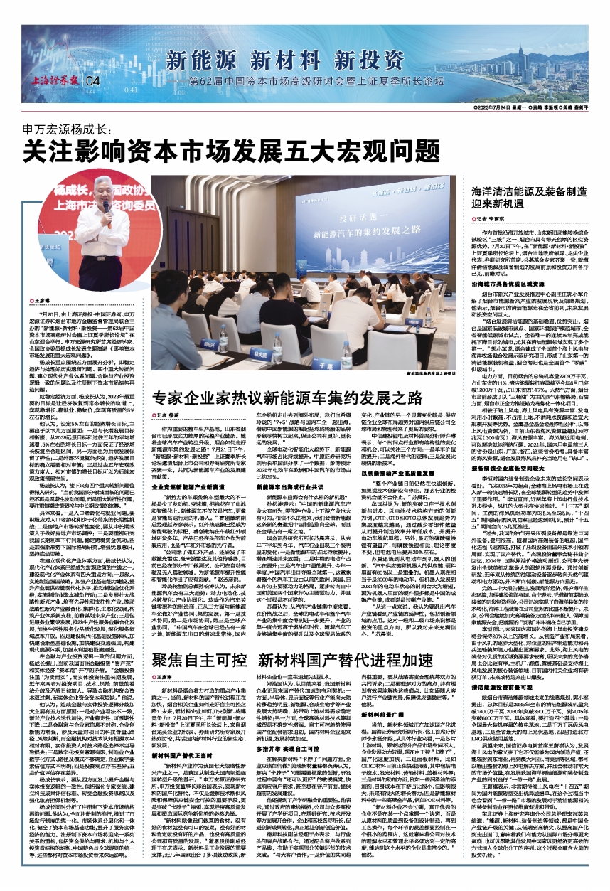新材料是烟台着力打造的重点产业集群之一。当前,新材料的国产替代进程正在加快,烟台相关企业如何走好自主可控之路?未来,新材料企业如何加快创新、构建竞争力?7月20日下午,在“新能源·新材料·新投资”上证夏季所长论坛上,来自烟台龙头企业的代表、券商研究所专家展开热烈讨论,共话国内新材料行业的新生态、新发展。