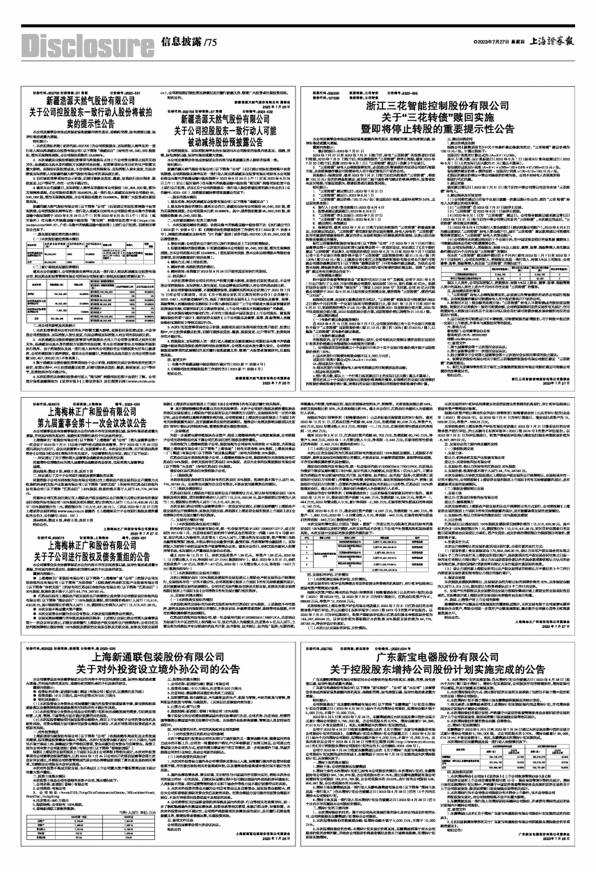 (2)“三花转债”自2023年7月27日起停止交易。