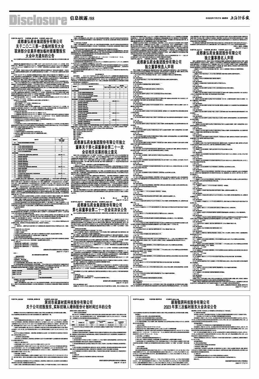 公司于2023年7月24日收到股东成都康弘科技实业(集团)有限公司提交的《关于提请增加二〇二三年第一次临时股东大会临时提案的函》,书面提请公司董事会将《关于选举周德敏先生为公司第八届董事会独立董事的议案》作为临时提案,列入公司二〇二三年第一次临时股东大会的审议事项中。根据临时提案,成都康弘科技实业(集团)有限公司提名周德敏先生为公司第八届董事会独立董事候选人。