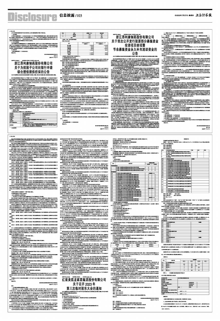 详情请见公司同日在指定媒体披露的《关于召开2023年第三次临时股东大会的通知》(公告编号:2023-102)。