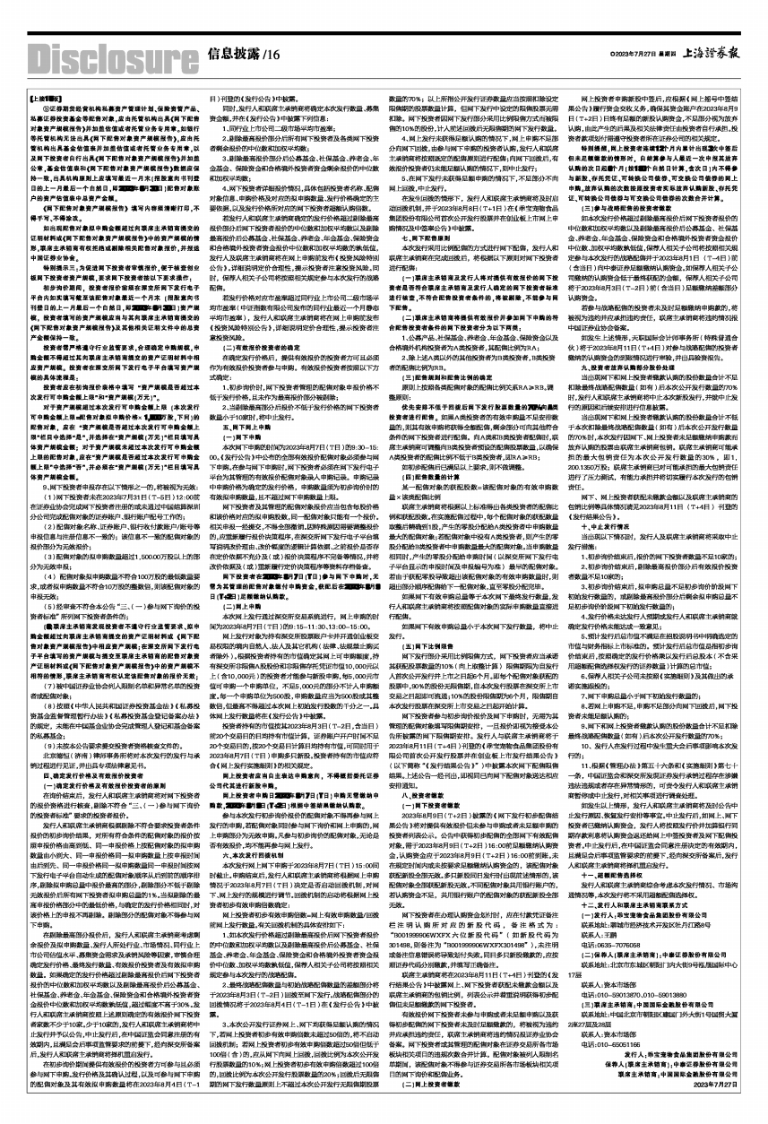 在初步询价期间提供有效报价的投资者方可参与且必须参与网下申购。发行价格及其确认过程,以及可参与网下申购的配售对象及其有效拟申购数量将在2023年8月4日(T-1日)刊登的《发行公告》中披露。