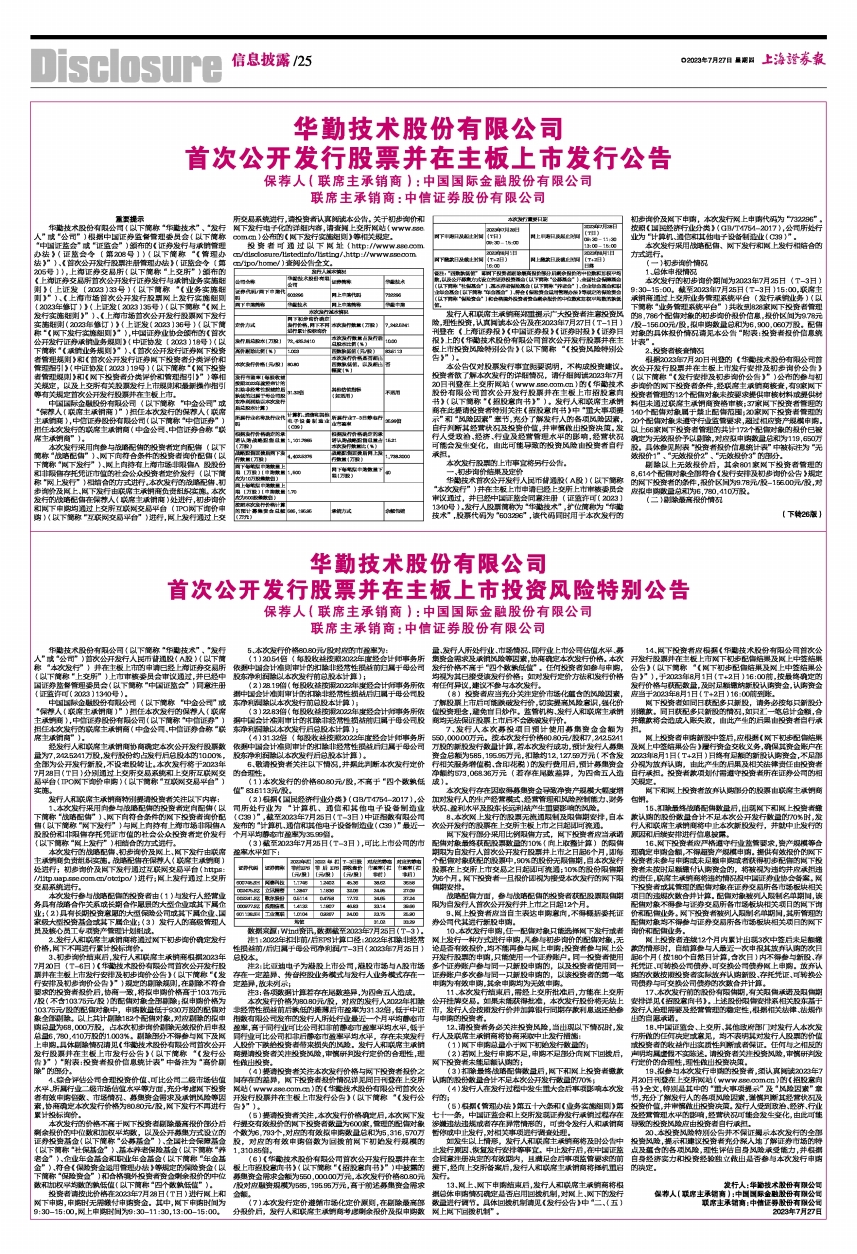 发行人和联席主承销商郑重提示广大投资者注意投资风险,理性投资,认真阅读本公告及在2023年7月27日(T-1日)刊登在《上海证券报》《中国证券报》《证券时报》《证券日报》上的《华勤技术股份有限公司首次公开发行股票并在主板上市投资风险特别公告》(以下简称“《投资风险特别公告》”)。