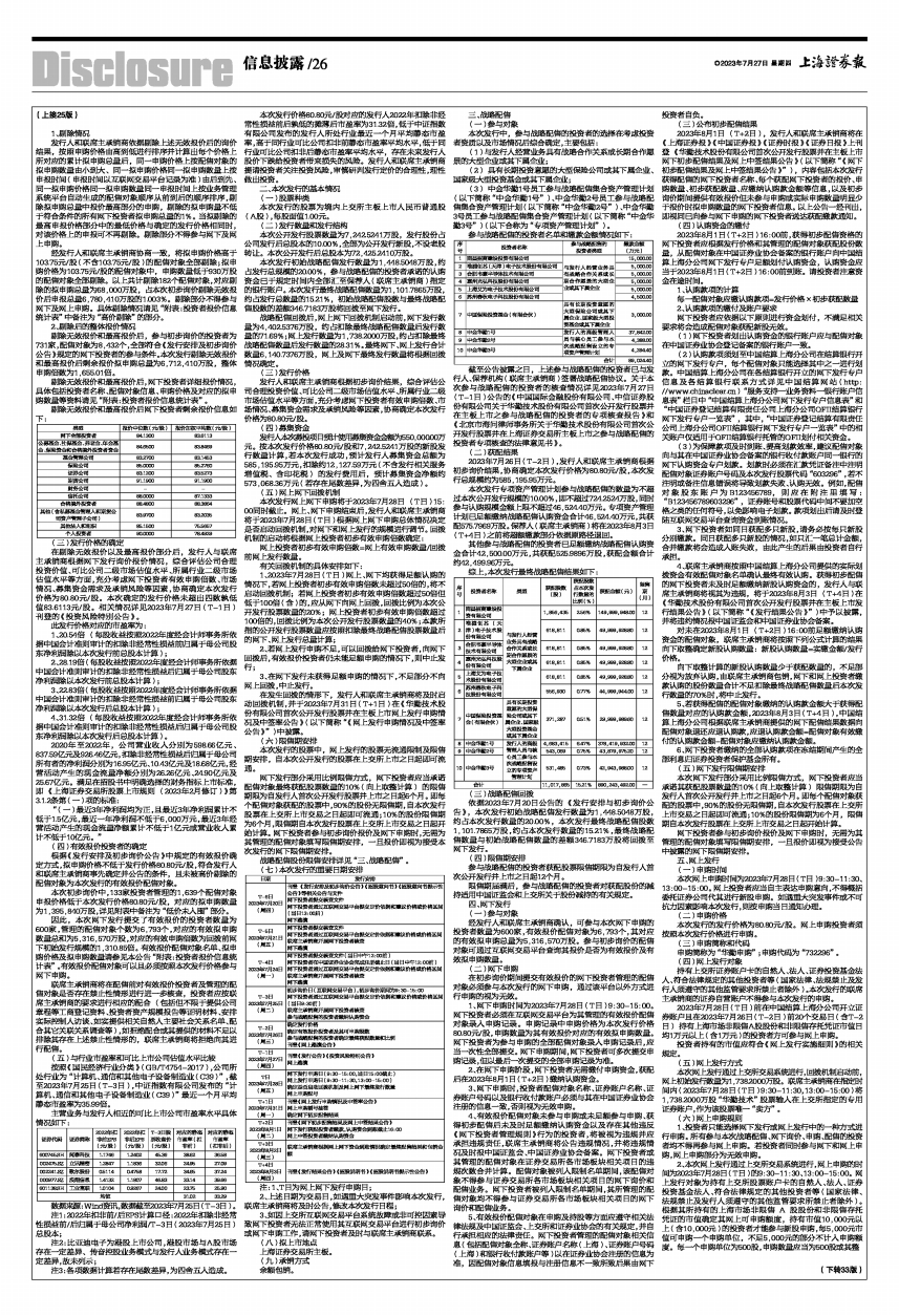 2、在网下申购阶段,网下投资者无需缴付申购资金,获配后在2023年8月1日(T+2日)缴纳认购资金。