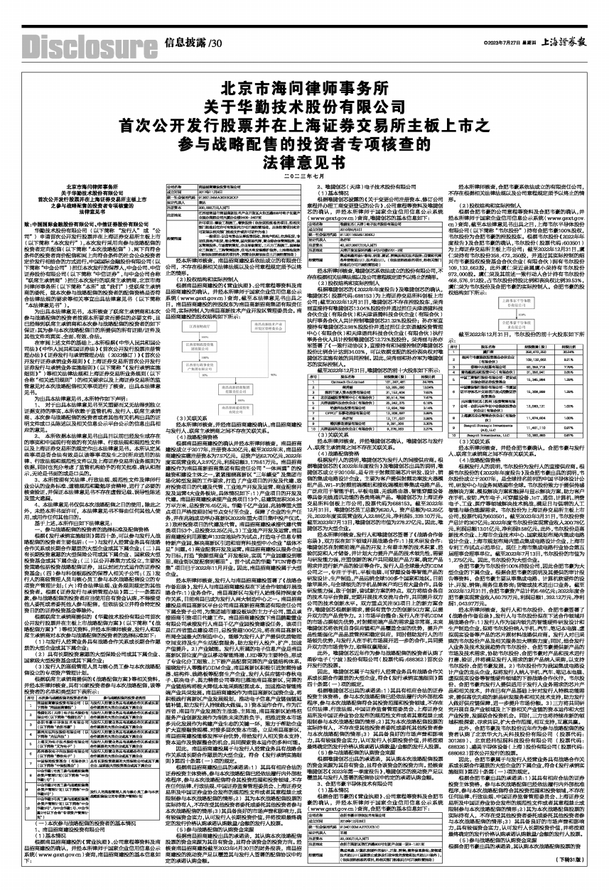 华勤技术股份有限公司(以下简称“发行人”或“公司”)申请首次公开发行股票并在上海证券交易所主板上市(以下简称“本次发行”),本次发行采用向参与战略配售的投资者定向配售(以下简称“本次战略配售”)、网下向符合条件的投资者询价配售和网上向符合条件的社会公众投资者定价发行相结合的方式进行。中国国际金融股份有限公司(以下简称“中金公司”)担任本次发行的保荐人,中金公司、中信证券股份有限公司(以下简称“中信证券”,与中金公司合称“联席主承销商”)担任本次发行的联席主承销商,北京市海问律师事务所(以下简称“本所”或“我们”)受联席主承销商的委托,就本次参与战略配售的投资者的配售资格是否符合法律法规的要求等相关事宜出具法律意见书(以下简称“本法律意见书”)。
