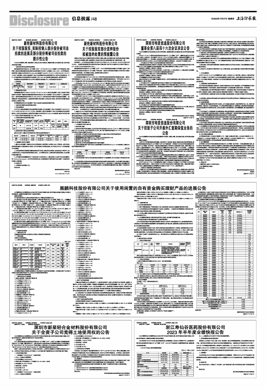 公司于近日通过查询淘宝司法拍卖网络平台获悉,四川省成都市中级人民法院将于2023年8月17日14时至2023年8月18日14时止(延时除外)在四川省成都市中级人民法院淘宝司法拍卖网络平台上进行公开拍卖活动,拍卖标的为侯毅先生持有的公司8,500,000股股票,起拍价为开拍日前二十个交易日的均价乘股票总数(850万股)乘70%。