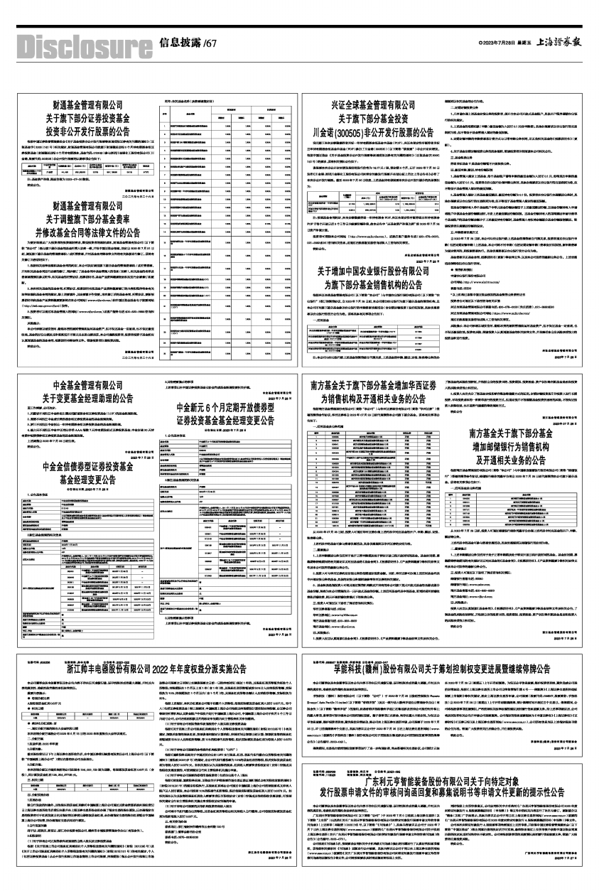 注:按照基金合同约定,兴全安泰稳健养老一年持有混合FOF、兴证全球安悦平衡养老三年持有混合FOF于每个开放日后3个工作日内披露份额净值,故本公告中“占基金资产净值比例”按2023年7月24日资产净值计算。
