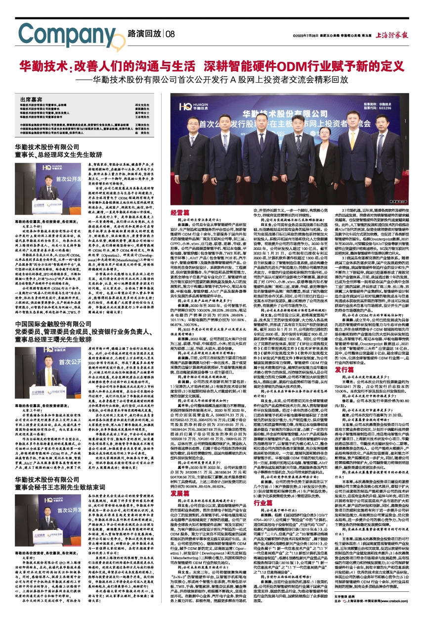——华勤技术股份有限公司首次公开发行A股网上投资者交流会精彩回放