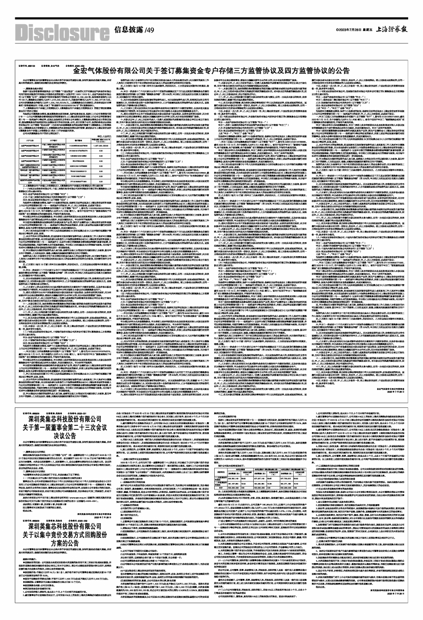 金宏气体股份有限公司关于签订募集资金专户存储三方监管协议及四方监管协议的公告