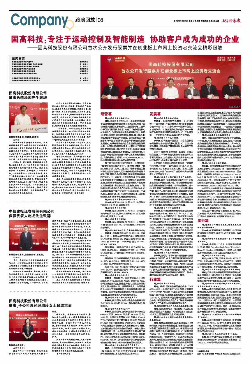 ——固高科技股份有限公司首次公开发行股票并在创业板上市网上投资者交流会精彩回放