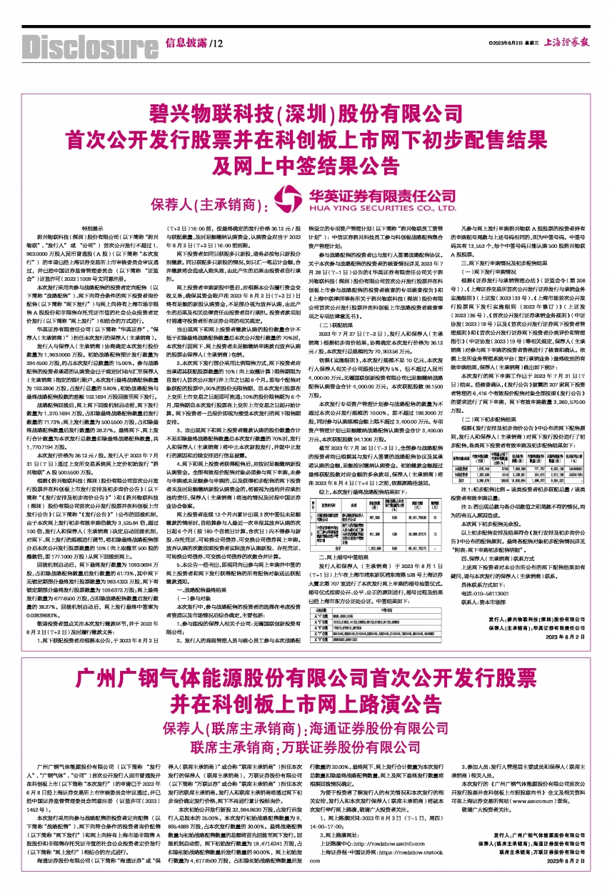 本次发行价格为36.12元/股。发行人于2023年7月31日(T日)通过上交所交易系统网上定价初始发行“碧兴物联”A股500.5500万股。