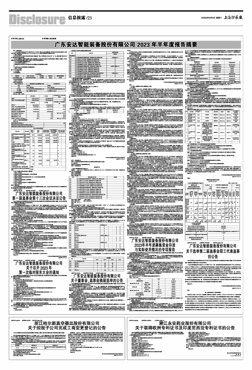 广东安达智能装备股份有限公司 2023年半年度报告摘要