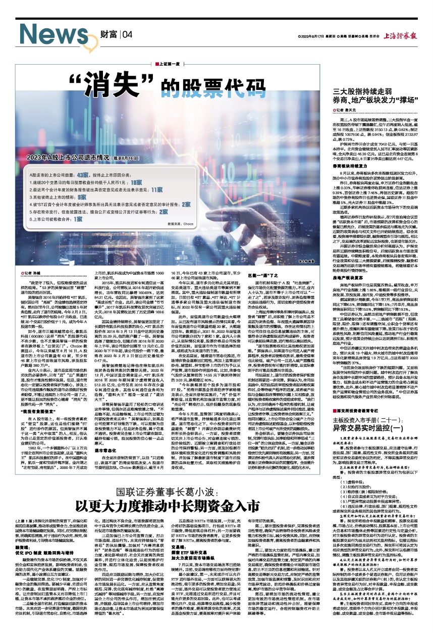 业内人士表示,退市是实现市场优胜劣汰的必要条件,只有“进”“出”渠道打通,股市才能良性循环发展。但是,退市常态化一定要以投资者保护为核心,涉及上市公司违规操作触发的退市必须做好投资者赔偿,不能让违规的上市公司一退了之,更不能让股民的投资信心随着“消失”的股票代码一并“消失”。