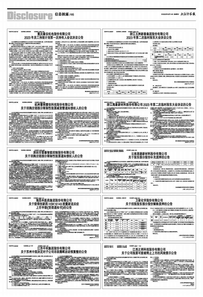 证券代码:002648 证券简称:卫星化学 公告编号:2023-047